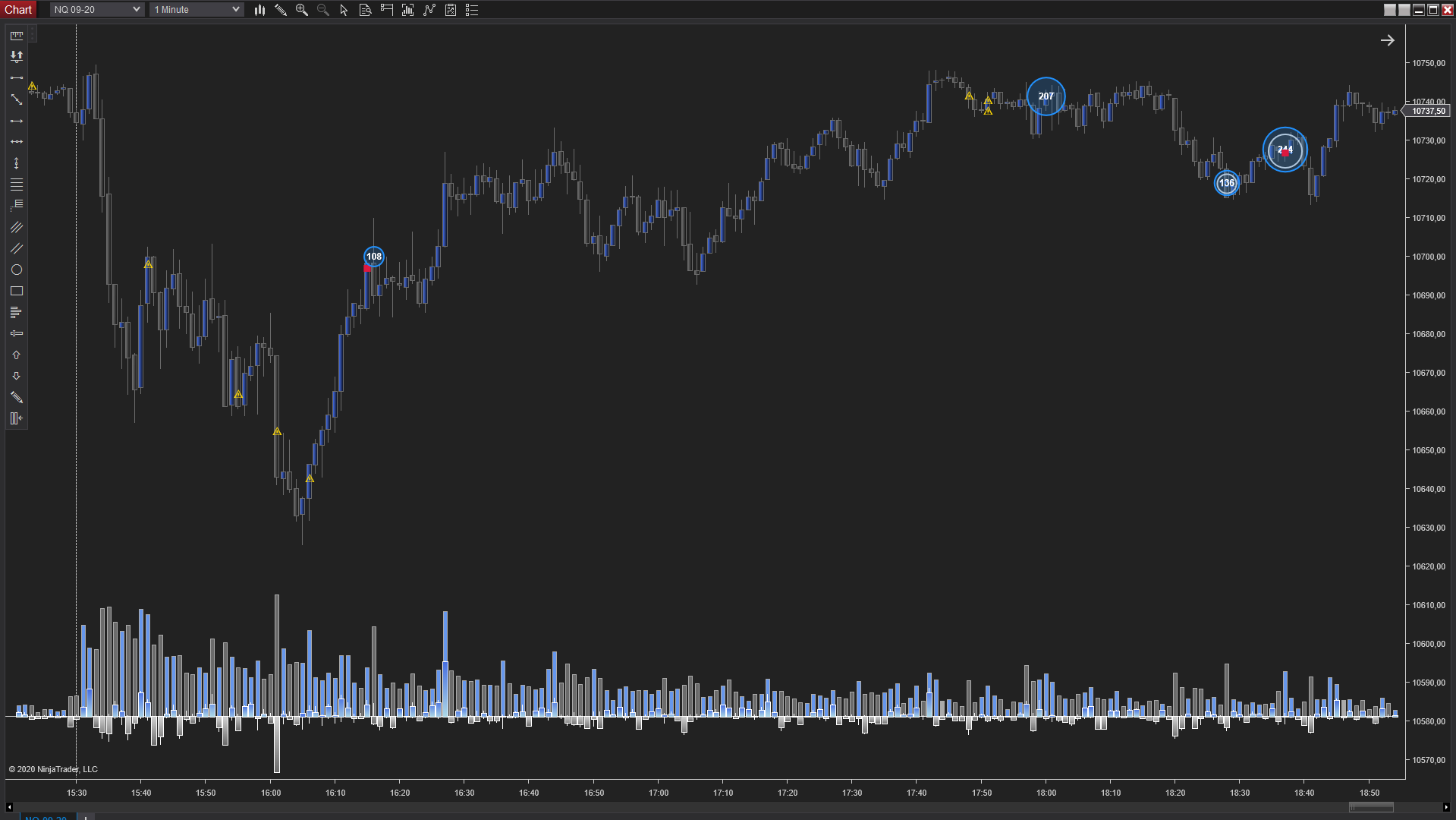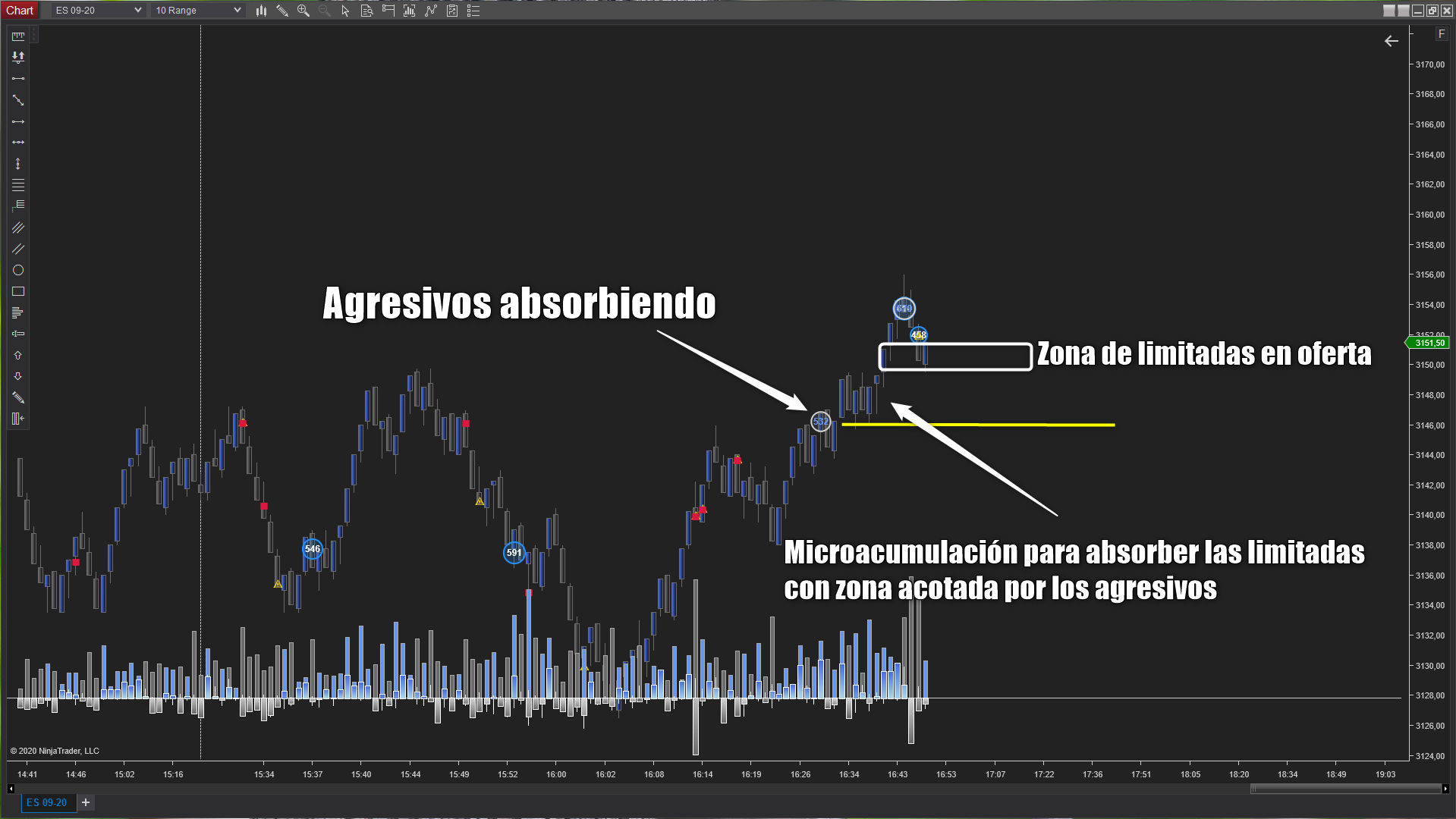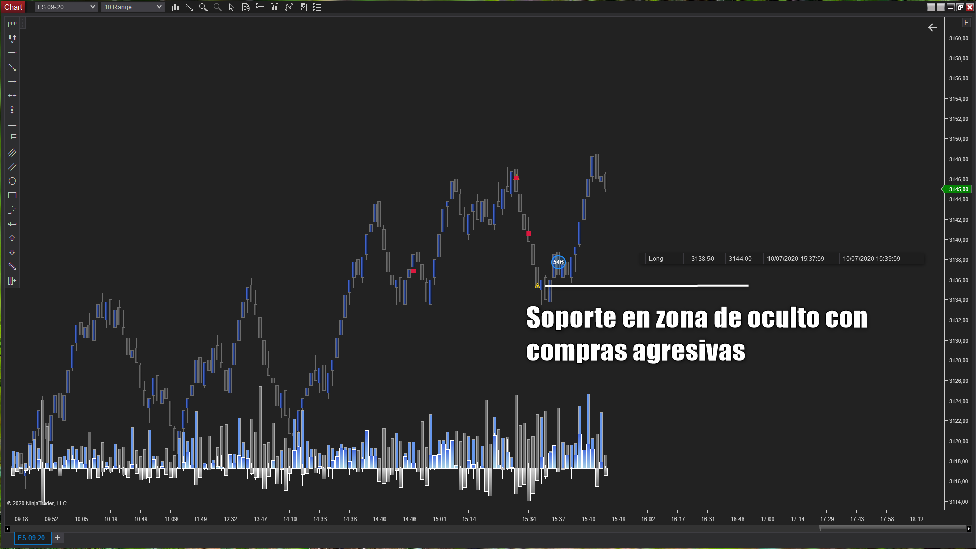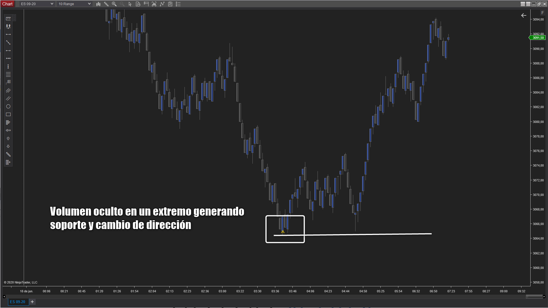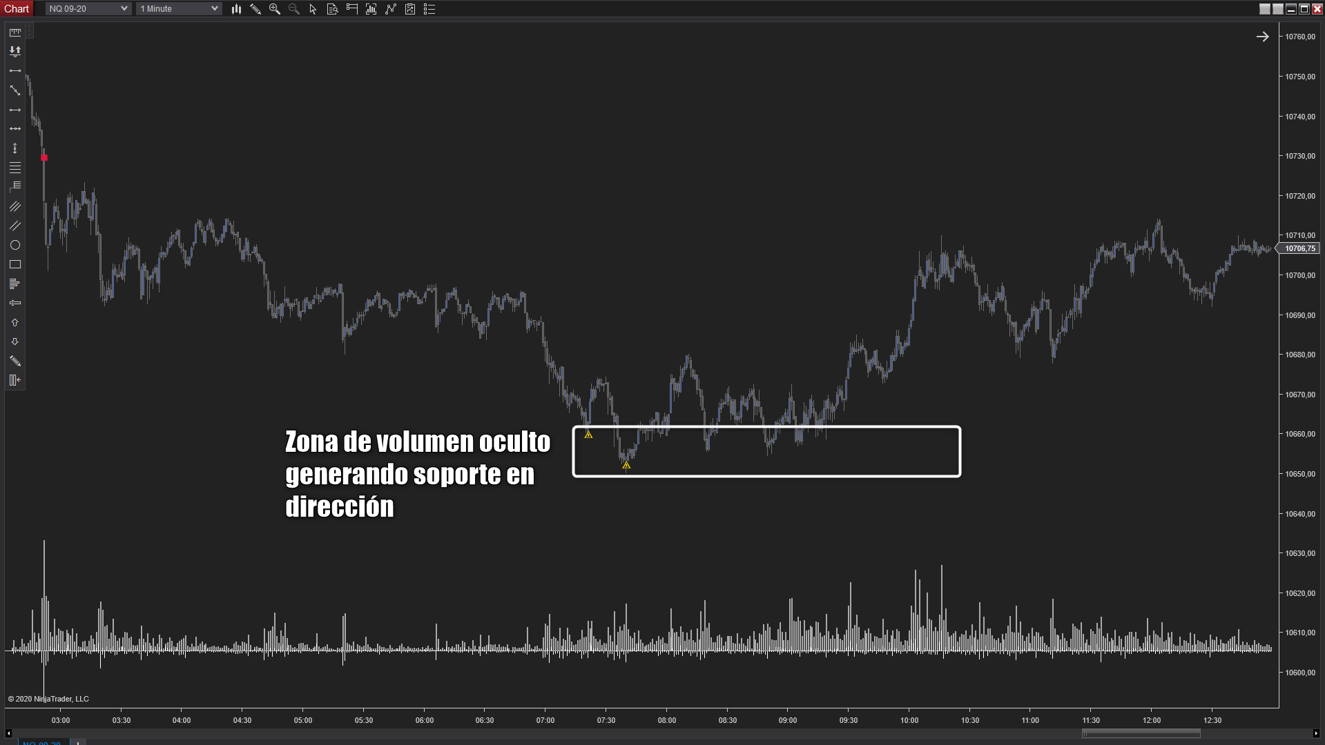 Es un indicador para NinjaTrader 8 que te ayuda a visualizar acciones que por su naturaleza se pueden atribuir a los grandes participantes en el Mercado. Por norma general, los grandes participantes usan tres variables en su operativa, volumen, tiempo y ocultación. Realmente no es sencillo obtener este tipo de información con solo visualizar un vlc, delta, volume profile e incluso el DOM. Gracias a este nuevo indicador podrás tener en tu gráfico zonas específicas donde existen órdenes ocultas, volumen agresivo y velocidad de ejecución.
